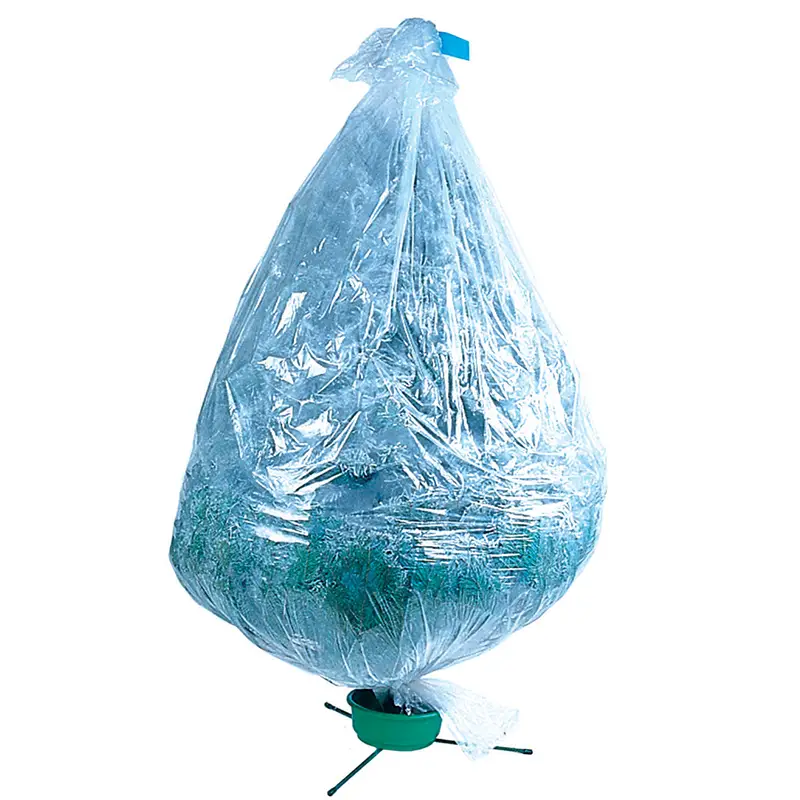 Poly tubing protects flocked trees from the weather.